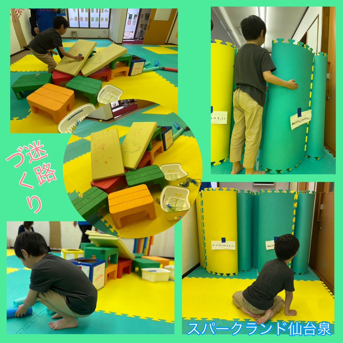 迷路づくりは、発想力や想像力が育まれます。自分が迷路をしたら、どんなルートが面白いだろう?どんな仕掛けがあったら楽しい?と、客観的な立場から見ることもできます。また、自分のアイデアを実現させるために創造力も養われます⭐️