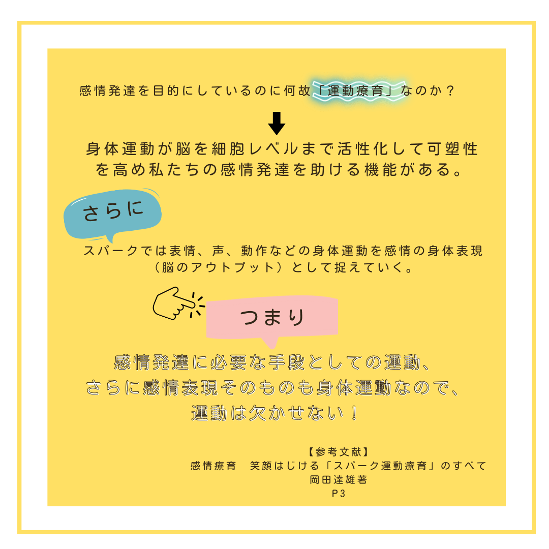 今回は【③スパーク運動療育:感情発達と運動療育の繋がり】の内容をお届けします🕊️