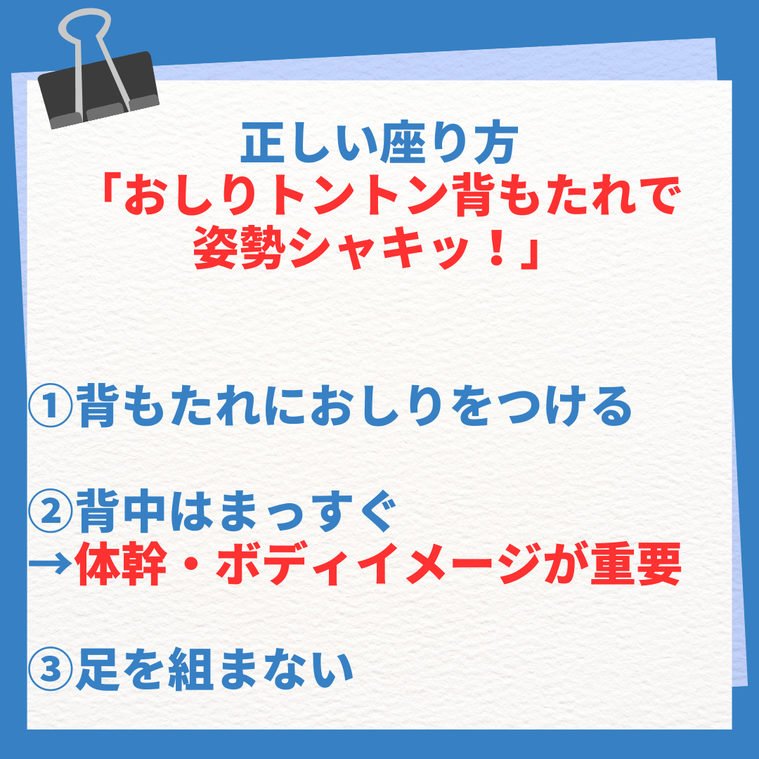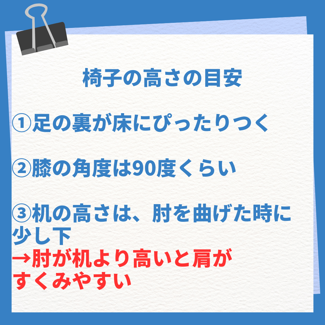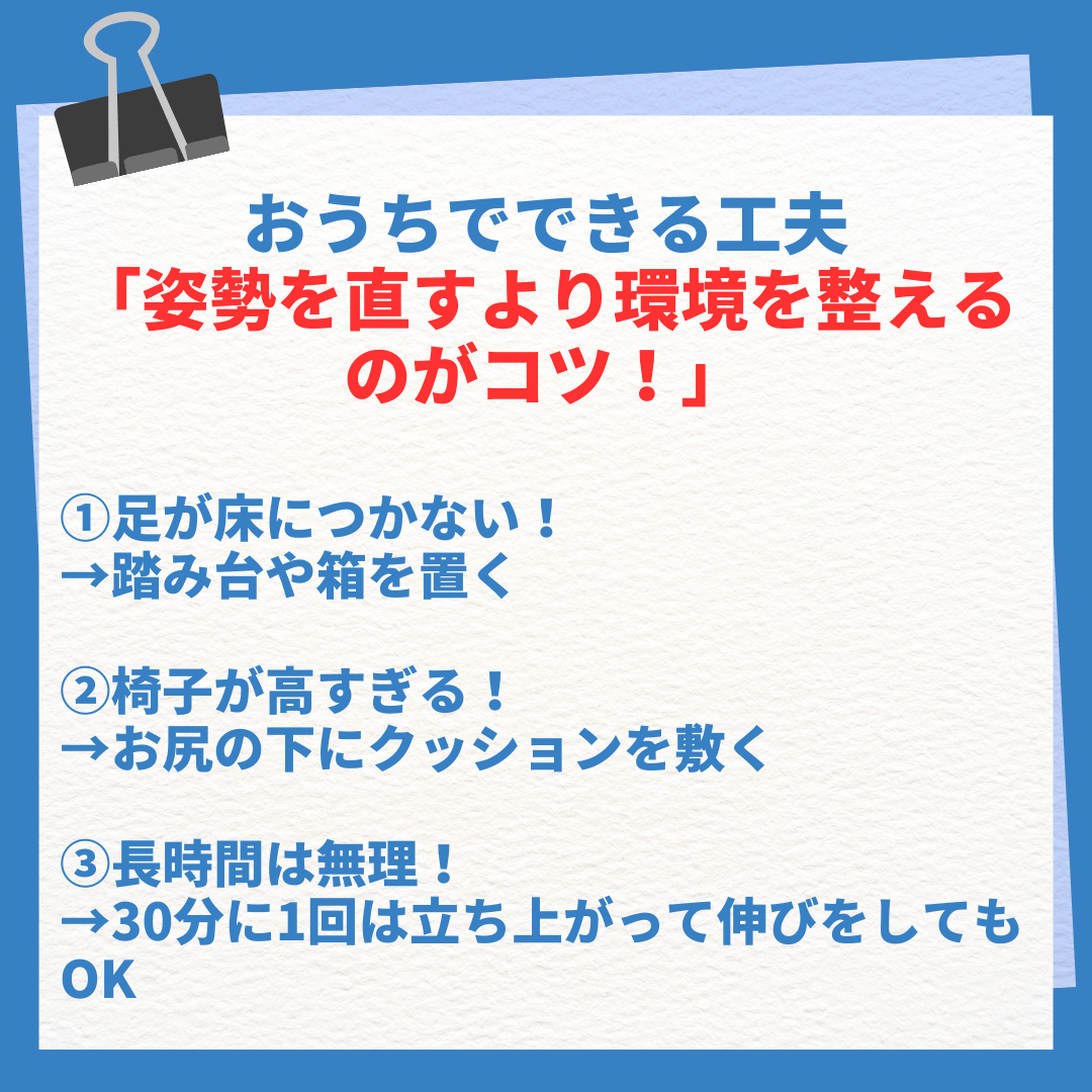 これが理想の姿勢です。届かないときは踏み台やクッションで調整してみましょう✨