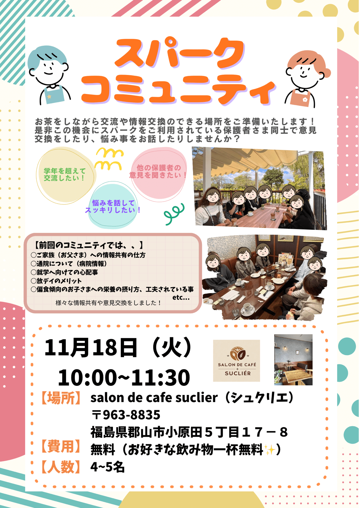 スパークでは、スパークをご利用している親御さま同士でのコミュニティの場を設けています🗣️