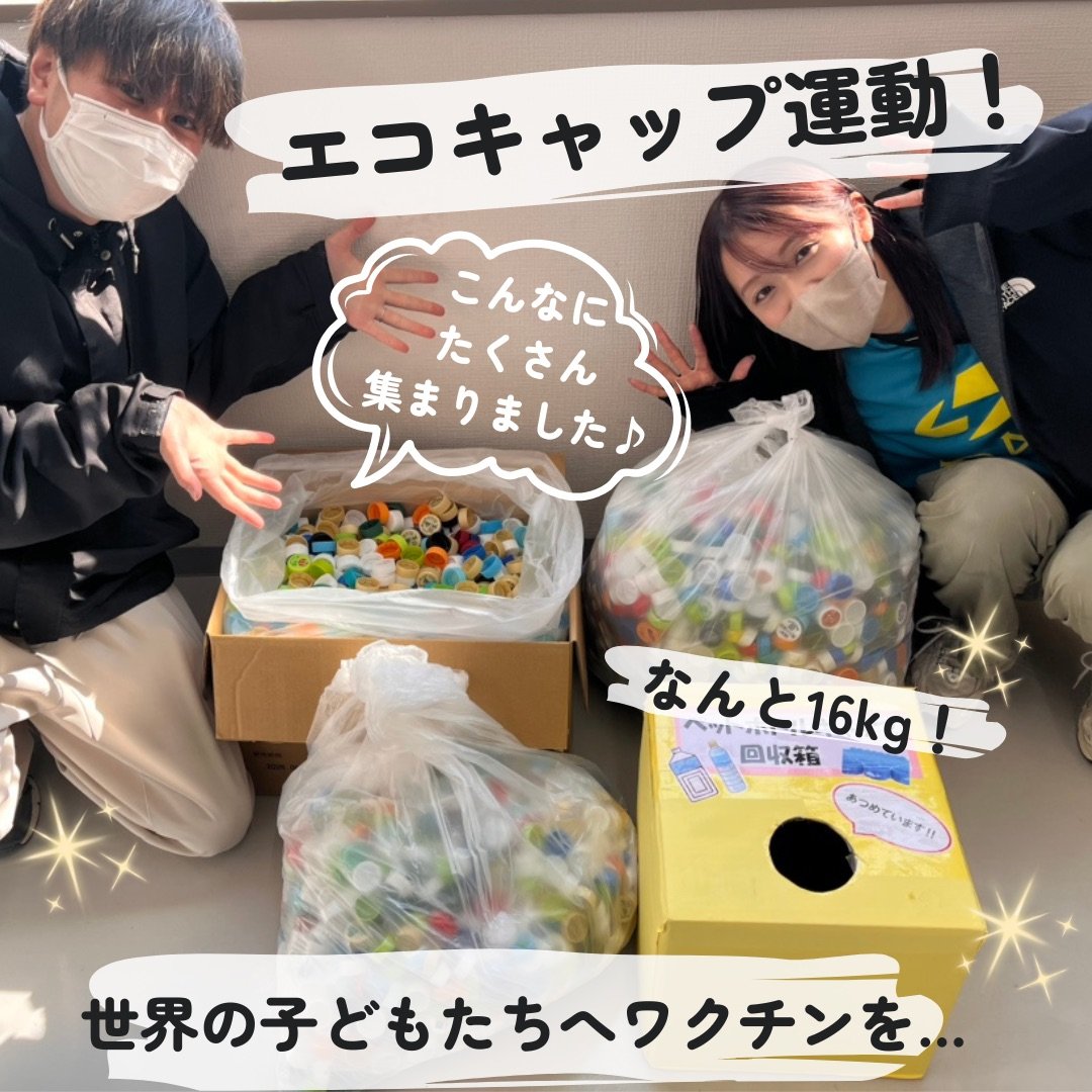 エコキャップ運動とは、ペットボトル等で不要になった蓋(キャップ部分)を集め、その売却利益で世界の子どもたちにワクチンを届ける活動を行っております💉👶✨