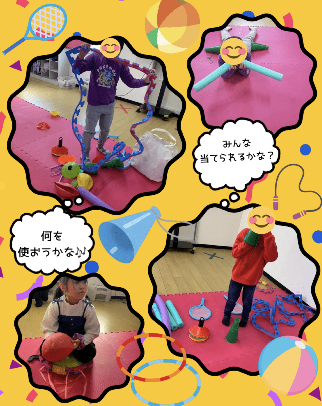 ネクストにあるボールやステップ、縄跳びやマットなど、色々な遊び道具を使って、指定されたポケモンキャラクターを表現🎶