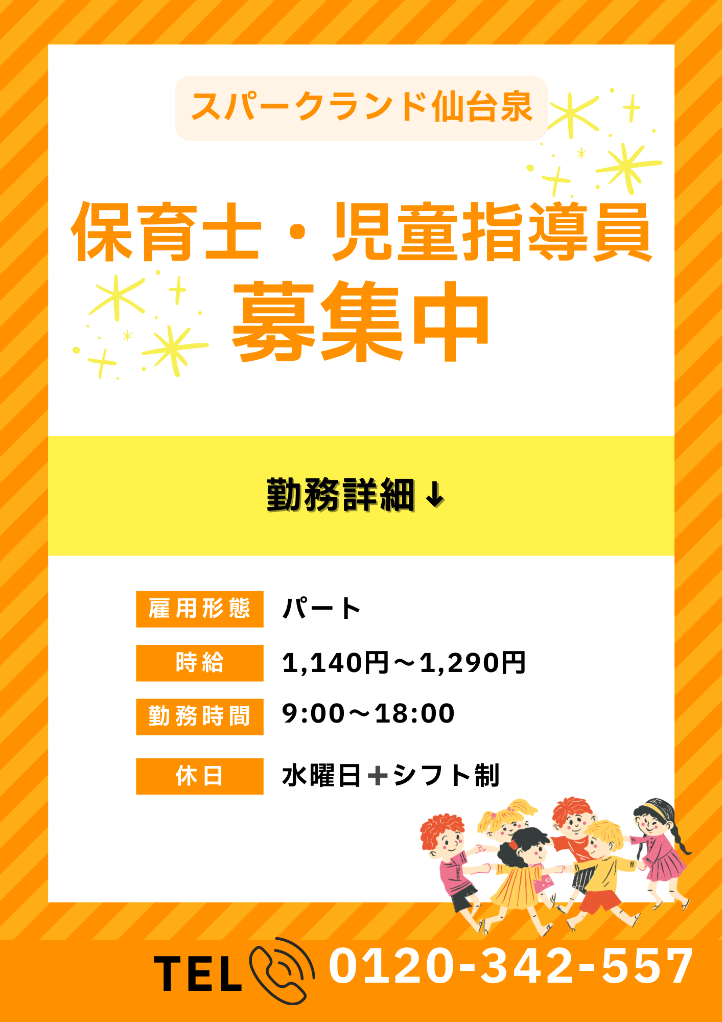 スパークランド仙台泉では一緒に働いてくれるスタッフ(パート)を募集中です!!