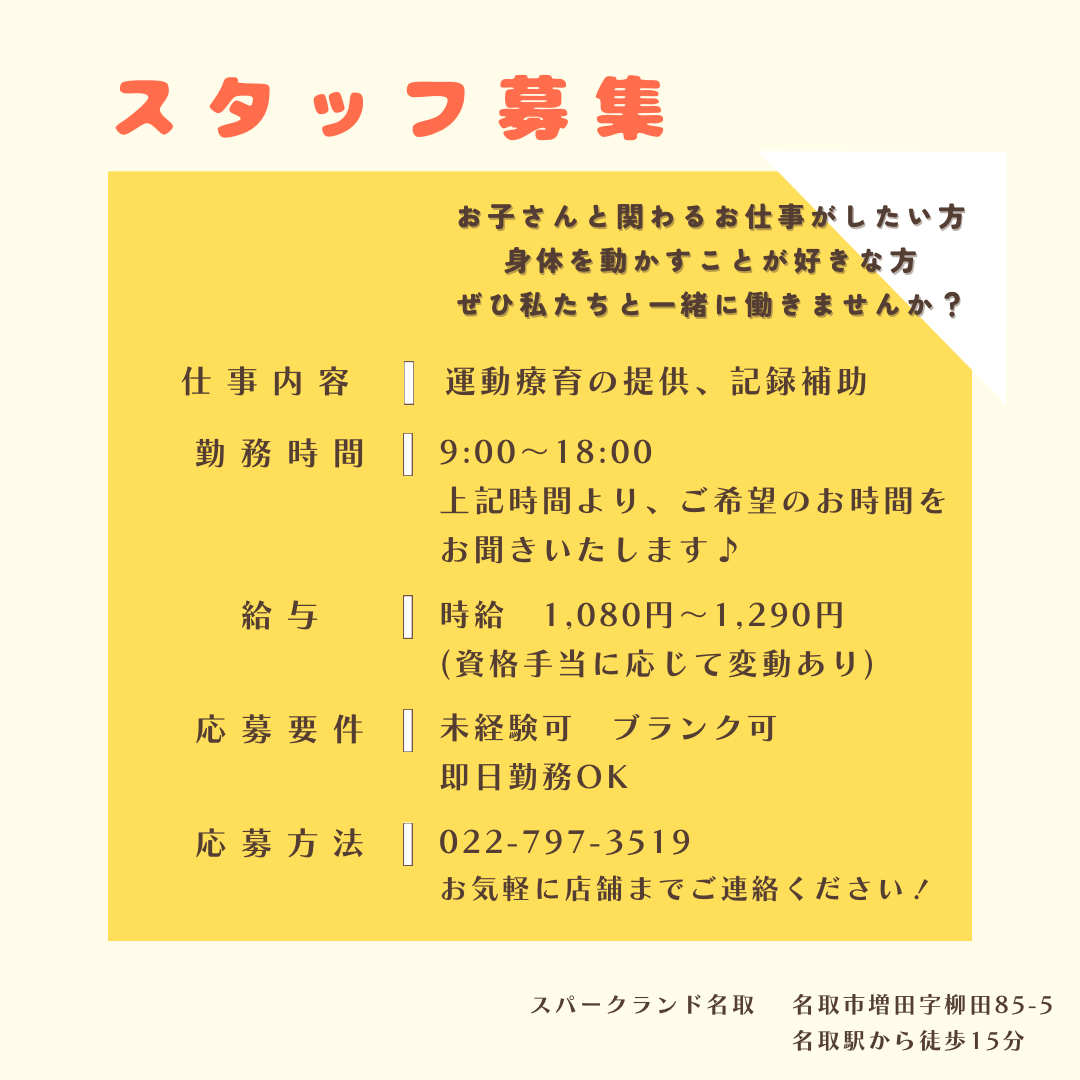 スパークランド名取では、新しい仲間を募集しています‼️