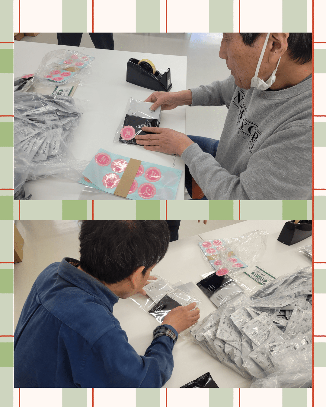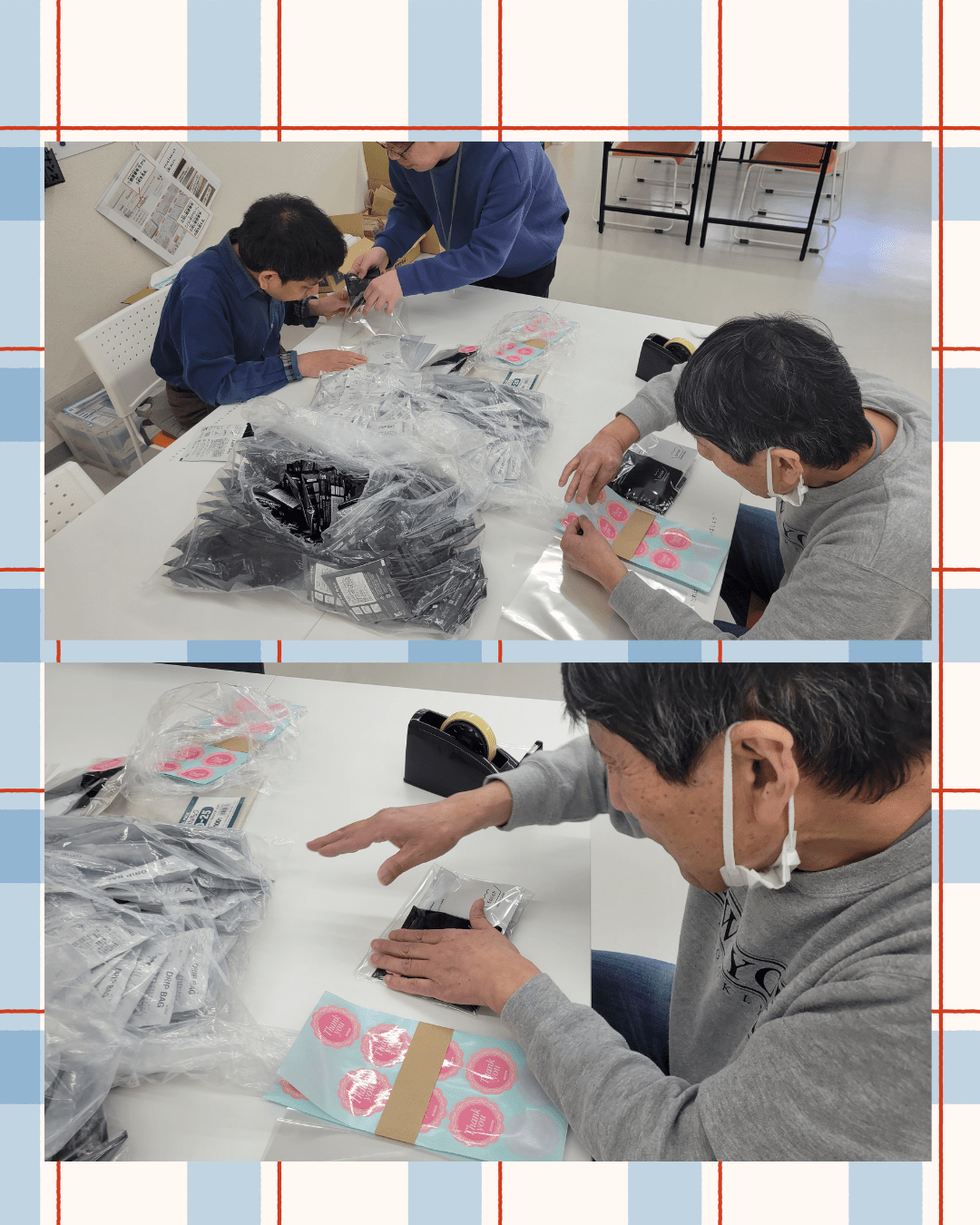 丁寧な袋詰め:ドリップバッグをセットにして、一つひとつ心を込めてパッキングしています。