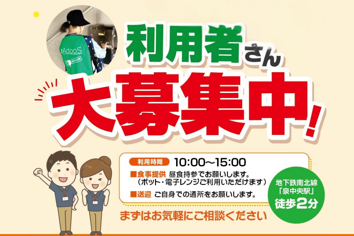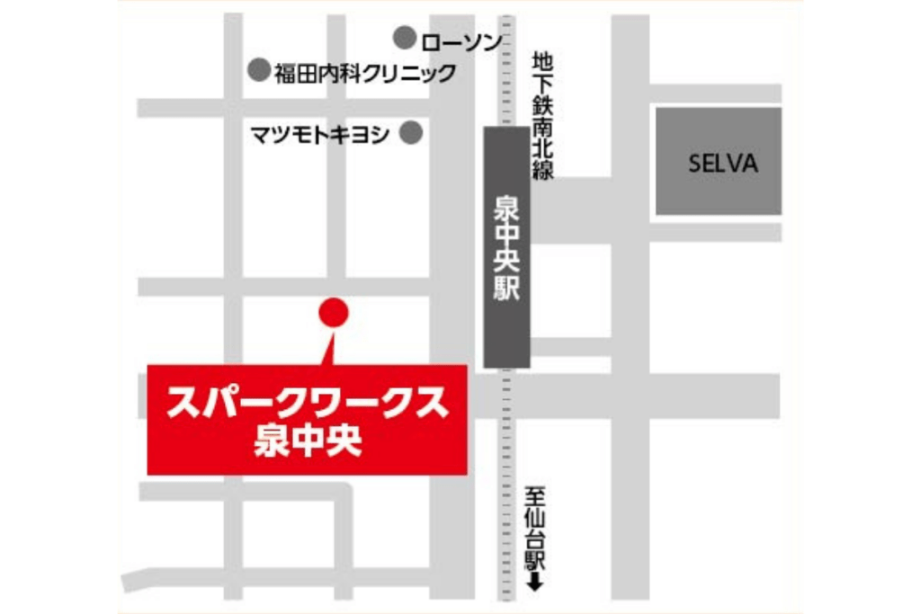 《 スパークワークスの理念 》 《 お仕事内容 》 地域のご家庭や企業にチラシをお届けするお仕事です。 魅力ポイント 🟢外を歩くので自然な有酸素運動になり、健康維持や運動不足解消に効果的 建物や施設を清潔で快適な環境に整えるお仕事です。 魅力ポイント 🔴作業が完了したときの「きれいになった!」という達成感を得られる 封入・袋詰め・シール貼りなど、手先を使ったコツコツ作業が中心のお仕事です。 魅力ポイント 🔵未経験でも始めやすいシンプルな作業内容 《 ご利用案内 》 ご利用対象者 1日の流れ アクセス 地下鉄南北線「泉中央駅」から徒歩2分。 送迎はございません。ご自身での通所をお願いします。