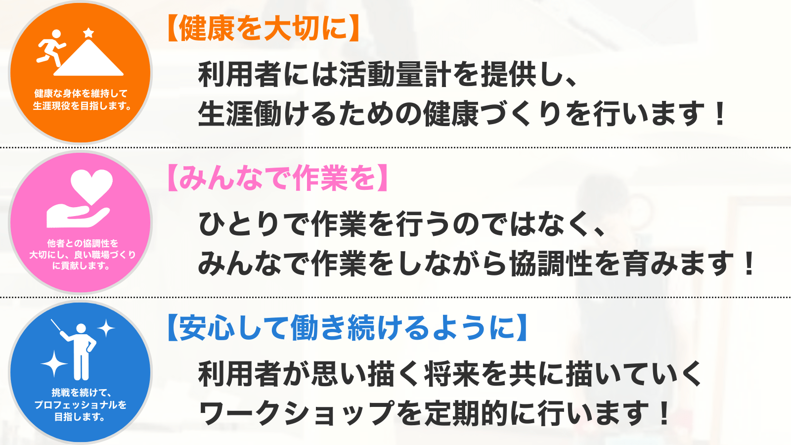 ココロとカラダを健康にして社会とのつながりをつくる 就労継続支援B型事業所